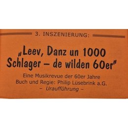 | Noch mehr Veranstaltungen mit "Leev, Danz un 1.000 Schlager - De wilden 60er" 3. Inszenierung - |